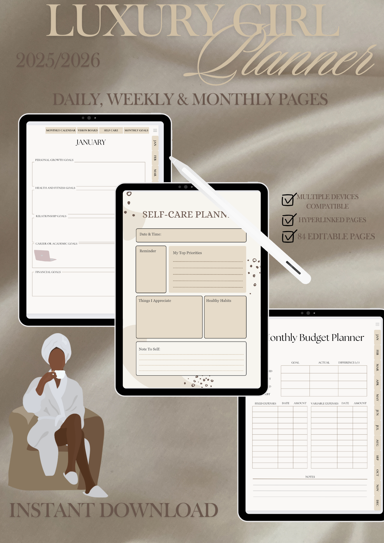 Soft life starts with self-care and a plan because becoming that girl is an inside job. 📝💭 The Luxury Girl Digital Planner is designed to